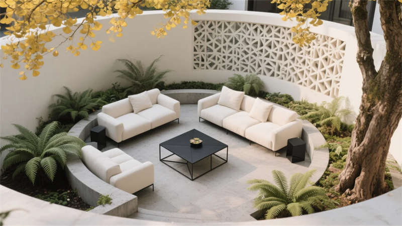 本案以光為媒介重塑空間本質,通過純凈幾何體塊在城市肌理中構建呼吸縫隙。建筑剝離冗余裝飾,讓混凝土的粗糲與原木的溫潤在落地玻璃的調和下形成動態平衡。垂直庭院系統貫穿室內外,使銀杏竹影成為流動的生命背景墻。